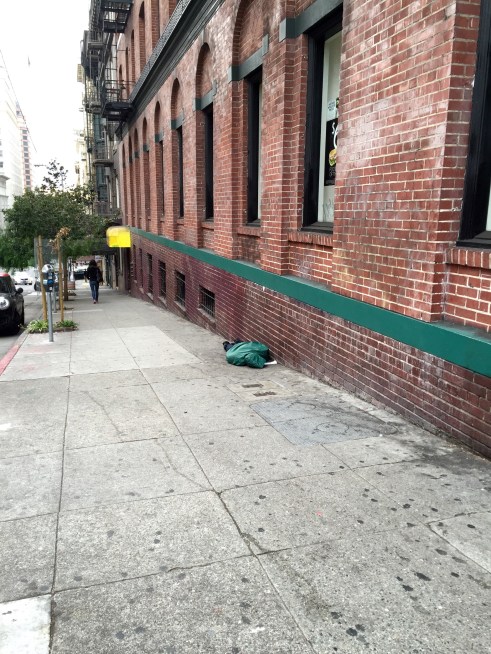 It does not matter where I am going. It doesn’t matter how he got there. A wealthy city, full of advancement…and full of fools pursuing a gold rush in the age of tech and high; and yet, they are on their way every morning pursuing their dreams. But this man on the street…he is not. How he could even dream when he can’t even sleep like a human being?