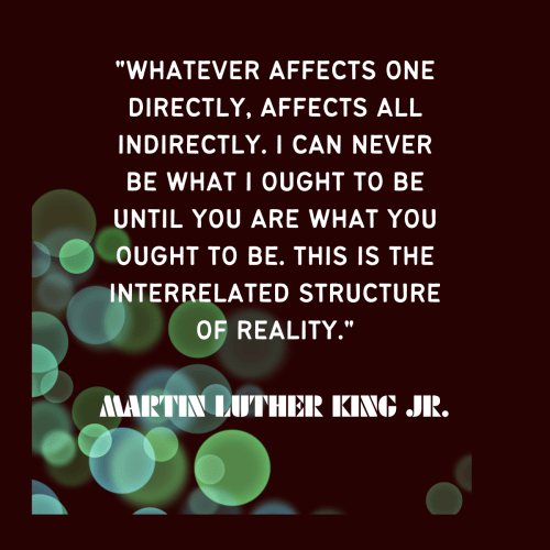 “Whatever affects one directly, affects all indirectly. I can never be what I ought to be until you are what you ought to be. This is the interrelated structure of reality.”